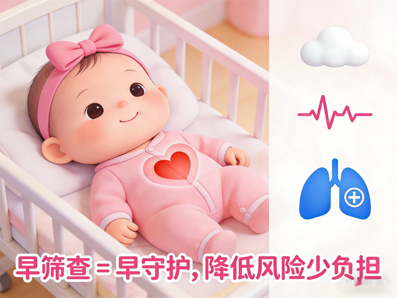 先天性心脏病严重危害儿童健康,其并发症包括肺动脉高压、缺氧、心力衰竭等,可危及孩子生命。若在新生儿时期进行先天性心脏病筛查可以早期发现、及时诊断、合理治疗和干预,提高其治疗效果,降低死亡率,还能避免和减少先天性心脏病并发症及其所导致的经济负担。