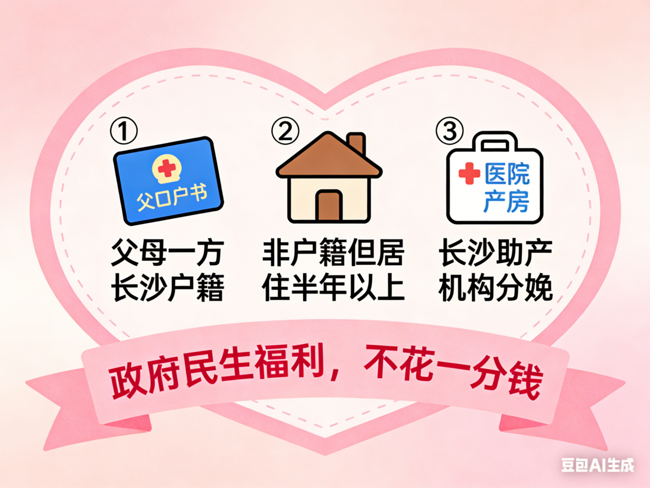 凡符合生育政策且夫妇至少一方具有长沙市户籍或夫妇双方非长沙市户籍但在本地区居住半年以上的孕产妇,在全市范围内具有助产资质的医疗机构分娩的6-72小时内的新生儿。